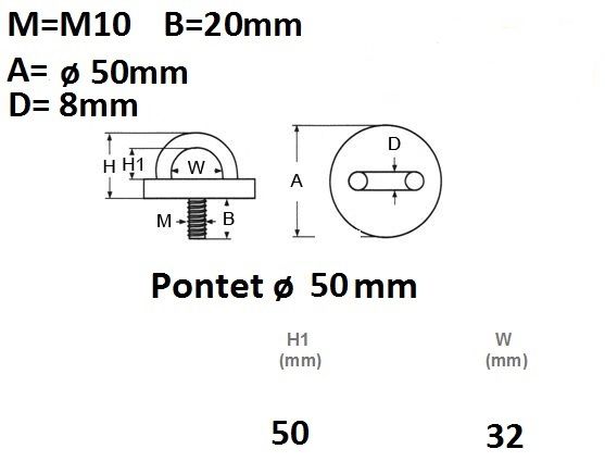 - Platine ø 50 mm avec tige filetée M10 (25 mm).