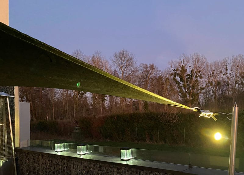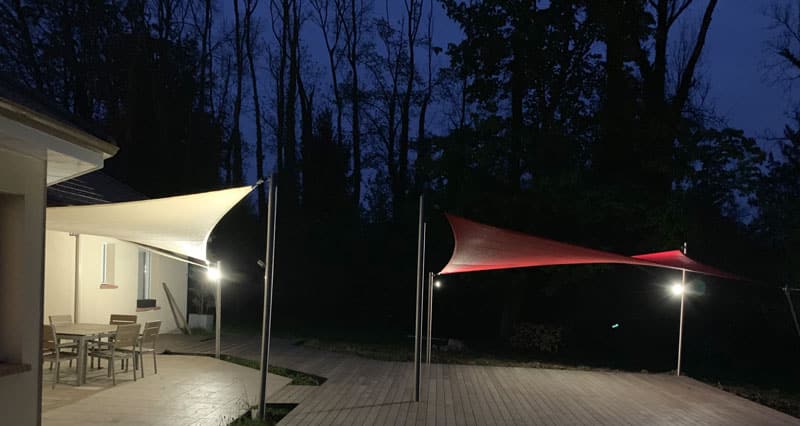 Faites de votre voile d’ombrage un véritable chef-d’œuvre, même à la nuit tombée.