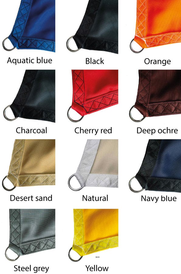 Teintées dans la masse, c’est à dire que la fibre du fil utilisé pour tisser la toile est teintée à cœur, il ne se tache pas, les voiles Commercial 95®340gm² sont protégées de la décoloration, malgré les assauts du soleil, cette technique vous garantit une durabilité des couleurs exceptionnelle.
